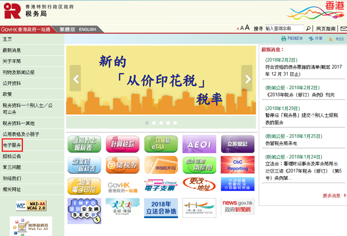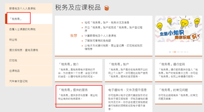 三、進(jìn)入香港稅局官方網(wǎng)站,找到“電子服務(wù)”,進(jìn)入“稅務(wù)易”頁面;