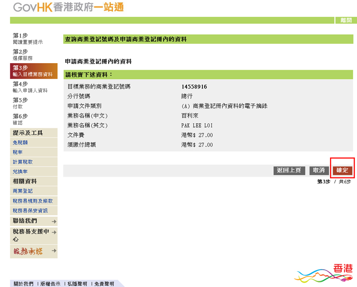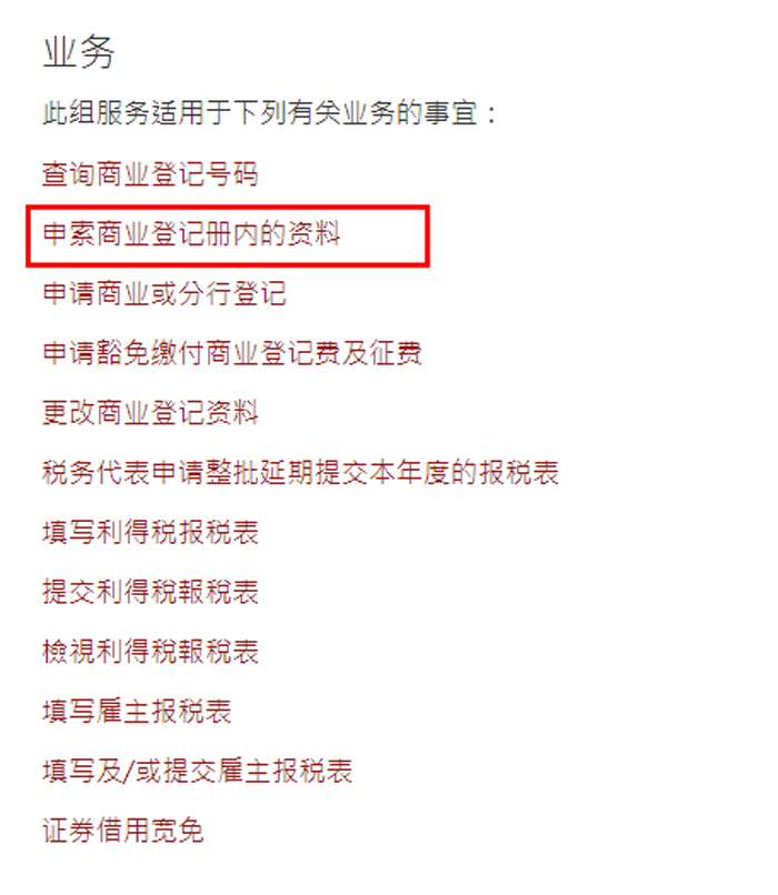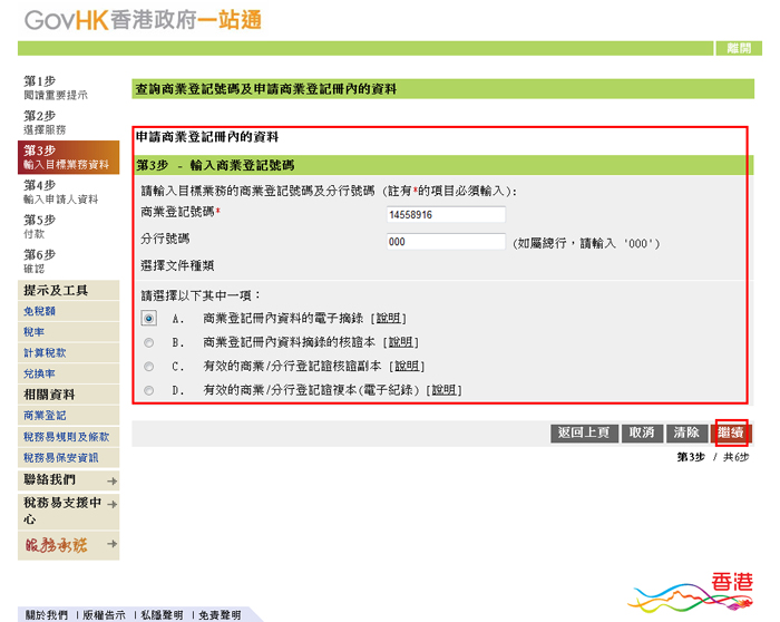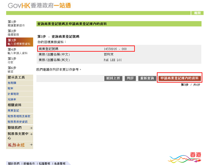 (申請(qǐng)商業(yè)登記冊(cè)內(nèi)的資料)輸入商業(yè)登記號(hào)碼