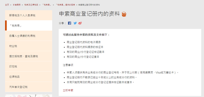 四、點(diǎn)擊在“稅務(wù)易提供的服務(wù)”進(jìn)入“申索商業(yè)登記冊(cè)內(nèi)的資料”;