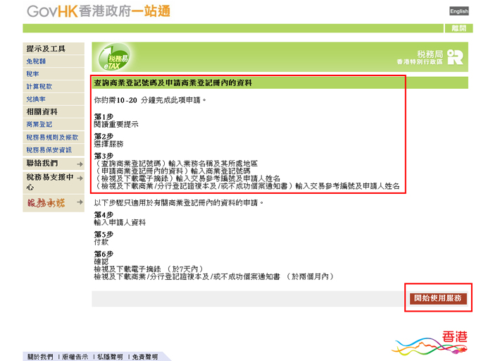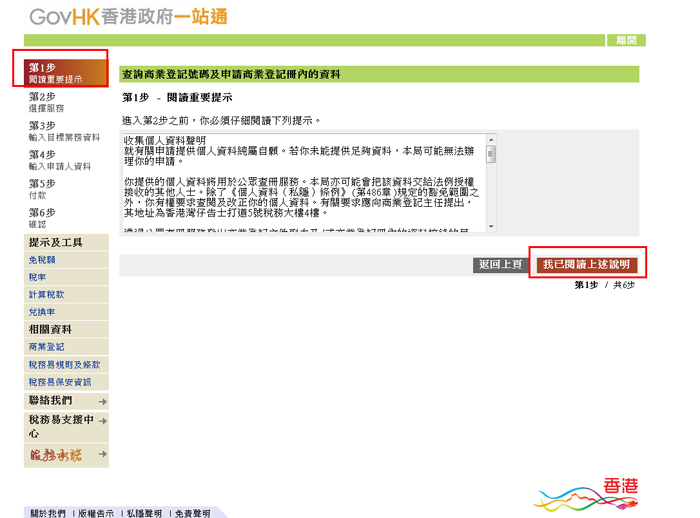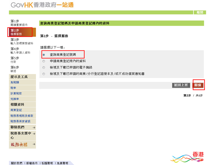 六、進(jìn)入立即申索的頁面后,會(huì)出現(xiàn)“查詢商業(yè)登記號(hào)碼及申請(qǐng)商業(yè)登記冊(cè)內(nèi)的資料”,按照步驟進(jìn)行查詢:
