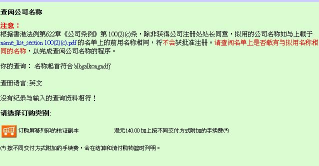 注意:香港公司名稱查冊(cè)可以以名稱起首查冊(cè),也可以全名查冊(cè),查冊(cè)時(shí)要注意公司名稱是英文還是中文的,如果是中文名稱,需用繁體字。