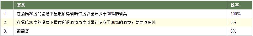 以下各種酒類(lèi)須按所列的稅率繳稅,稅率以?xún)r(jià)值的百分率表示: